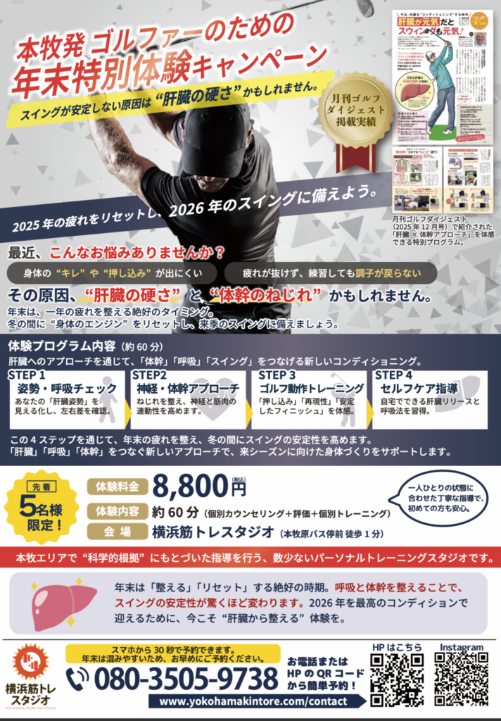 飛距離アップ・疲れにくい身体・安定したスイングを手に入れたい方は、